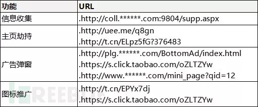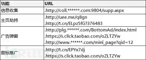 信息收集,主页劫持,广告等相关URL信息: