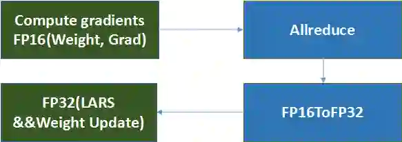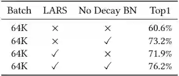 1)半精度训练与层次自适应速率缩放(LARS)算法相结合