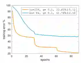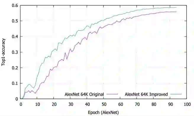 在这个迭代过程其中,两个典型的网络,AlexNet和ResNet-50具有里程碑的意义。然而,在一个英伟达的 M40 GPU 上用 ResNet-50 训练 ImageNet 需要 14 天;如果用一个串行程序在单核 CPU 上训练可能需要几十年才能完成[3]。因此,如何在更短的时间内在ImageNet上训练好AlexNet和ResNet-50一直是科研工作者研究的课题。