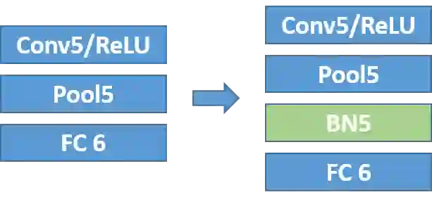 这个结果启发我们在Pool5后插入一个Batch Norm层,用以规范特征的分布。如下图所示,完善AlexNet后,BN5后面输出的特征图分布更加均匀,64K batch在100 epochs下收敛到58.7%,不损失准确性的同时完成了加速训练。