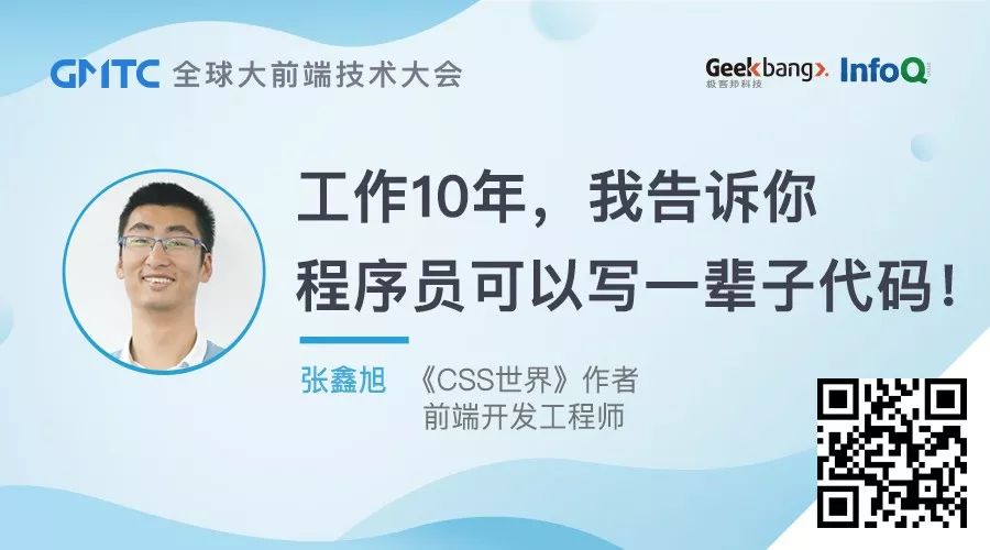 程序员过了 30 岁必须转管理岗才有出路?并不是!当技术积累突破到一定阶段后,你就会明白,自己可以走出一条别人没有走过的纯专业方向的探索之路。GMTC 大会上,我们邀请到了《CSS 世界》作者张鑫旭,工作 10 年他一直在专业一线,没有管理任何人,但过得还不错。我们来听他聊聊工作 10 年以后,他在前端专业成长路上的探索。