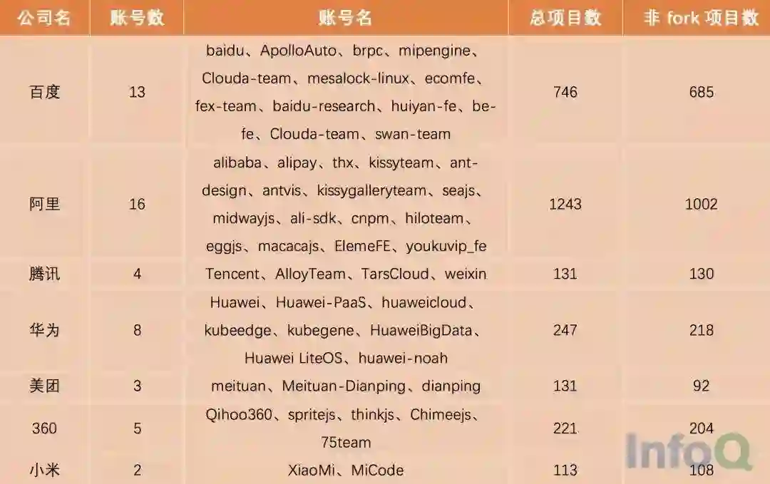技术委员会要做的第三件事情是建立起年轻化、高端化、规模化的人才梯队,让公司充满技术活力。根据 InfoQ 此前针对国内公司进行的开源调查显示,在参与统计的百度、阿里、腾讯、华为、美团、360、小米 7 家公司中,小米在 GitHub 上的开源账号数最少,总体项目数仅为 113,同样位列最后一名,这在一定程度上说明小米的技术活力不足,存在很大提升空间,这或许会在技术委员会设立之后得到改善。
