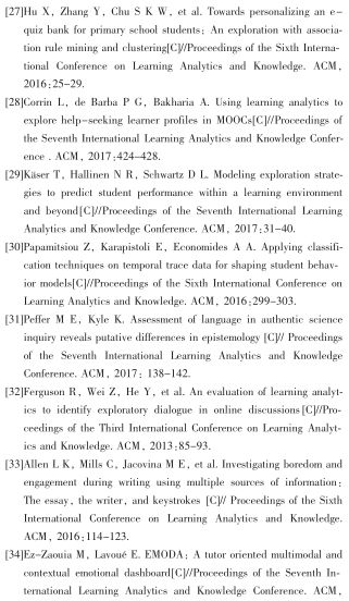 学习分析最根本的任务,就是对学习环境中所捕获的大量学习行为数据进行分析处理,进而加以理解,以促进学习的优化。研究者们通过对学习者的在线视频观看情况、学习任务完成状况、在线测验得分,以及论坛参加与发言等数据进行收集和处理,以可视化方式呈现,形成对个体学习行为的过程报告;或者将学习者的行为痕迹与认知或情感过程进行关联,以协助细致地理解行为所发生的情境。