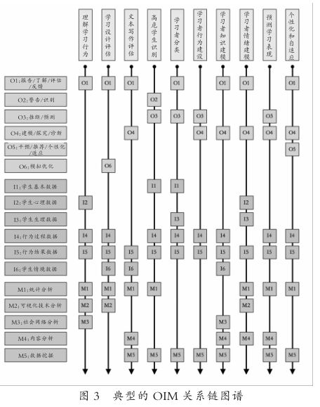 基于上述多重对应分析结果和OIM关系链建构策略,结合当下学习分析应用实践的热点话题,本研究提炼出10条典型的学习分析OIM关系链,如图3、表4所示。