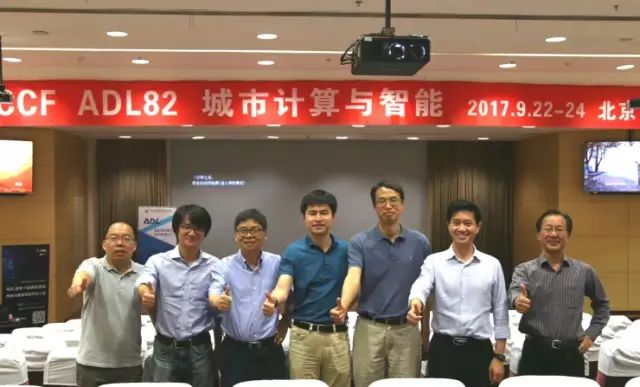 24 号晚,讲座结束后,郑宇博士在朋友圈贴出了 7 位导师的合影,并附文:“一张具有历史意义的照片,三位城市大数据的 973 首席科学家,清华、北大和上交的三位千人计划获得者,以及微软、滴滴和菜鸟网络的相关技术负责人在 CCF ADL 聚齐了。”