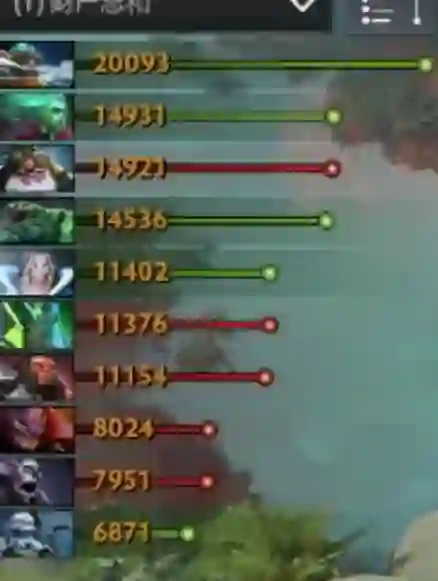 14 分钟时,狙击手对远古野怪使用大招,但是远古野怪具有魔法抗性,因此这个大招的效果近乎于 0。16 分钟时,直升机被击杀,然而经济仍然为全场第一,且超过第二名潮汐猎人 10%。