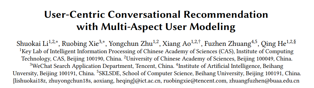 题目:User-Centric Conversational Recommendation with Multi-Aspect User Modeling
