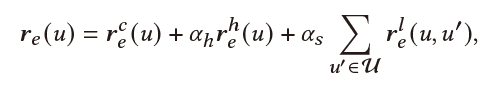Entity-View:最终的用户实体实体表示为用户当前实体表示、历史实体表示、相似用户实体表示的融合: