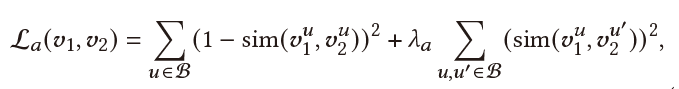 Multi-View Preference Mapper:由于前面得到的信息是multi-view的(如单词、实体就是两种不同view),这里我们基于对比学习,学习不同view的内在信息,进而得到更准确地表示。其核心思想是:同一个用户的不同view信息应当相关,而不同用户应当无关。其目标函数如下: