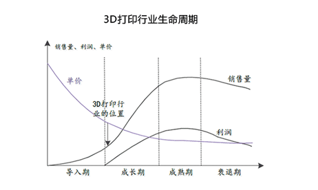 3D打印经过了近 40 年的发展,龙头公司开始实现显著盈利,市场认可度快速上升,行业收入增长加速。根据典型的产品生命周期理论,技术产品从导入期进入成长期的过程中往往表现出加速增长的特征,判断目前3D打印产业正在进入加速成长期。