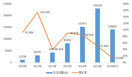 图表:2008-2015年全球3D打印设备出货量增长情况