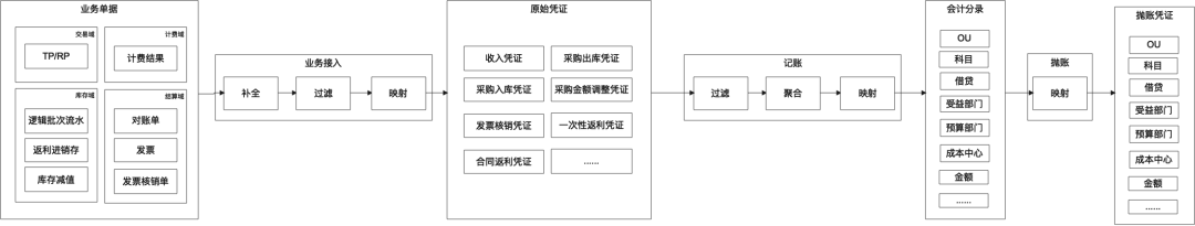 2.建立整个核算链路单据维度的关联关系(业务单据<->原始凭证<->记账凭证<->抛账凭证),具备双向的单据追溯能力(提升对账效率)