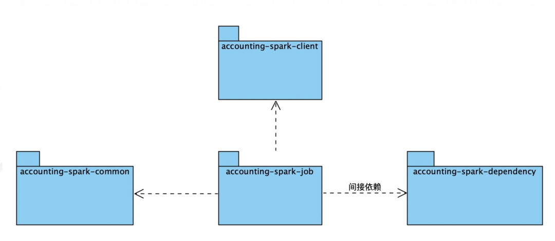 ascp-finance-accounting-spark负责spark job的开发维护,spark on odps client模式下需要基于服务上传jar包,若jar包较大,性能较差,所以基于client模式下提供的resource管理能力,我们将项目module拆分如下: