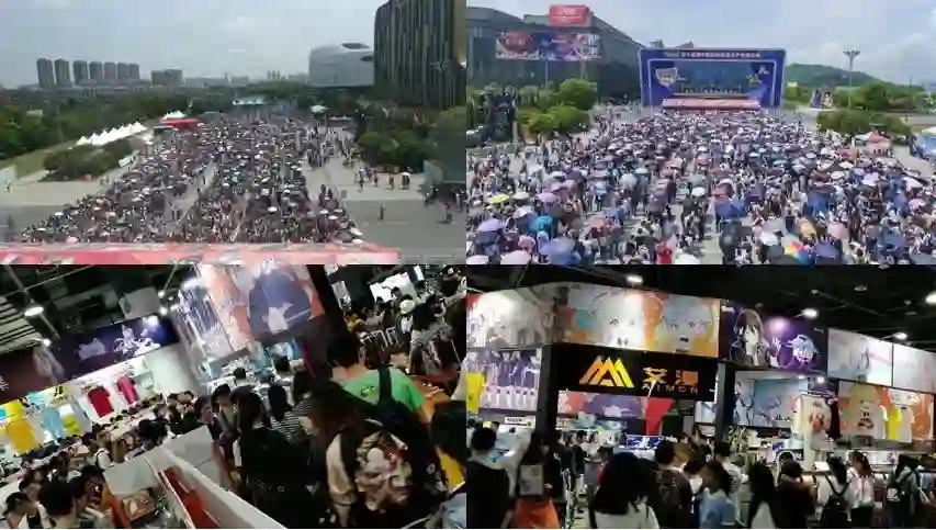 图为2018年杭州动漫节参与人群爆满的盛况,越来越多的年轻群体愿意为衍生品付费