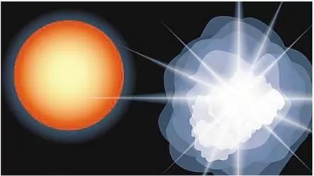 Ⅰa型超新星图示之二,当白矮星超过1.4倍太阳质量,它就会爆炸,变成一颗超新星