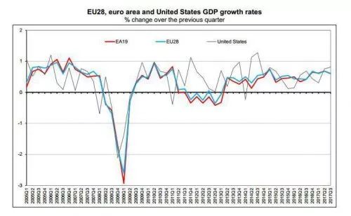强劲的数据支持下,11月初,欧盟委员会在2017秋季经济展望报告中将2017年欧元区GDP增速预期上调到2.2%。