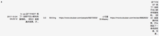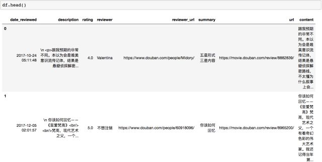 上面的数据集包含了《至爱梵高》影评的诸多信息,下面我们将以影评内容( content 列)为分词与词云绘制的重点对象。