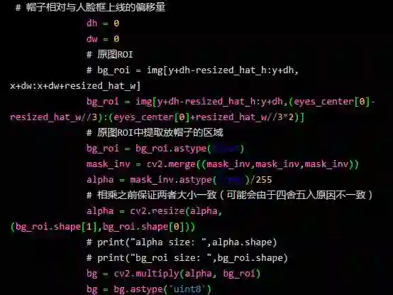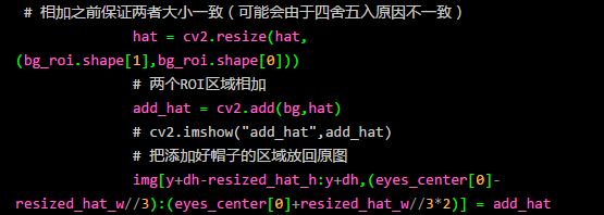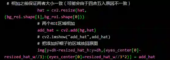然后我们根据人脸检测得到的人脸的大小调整帽子的大小,使得帽子大小合适。