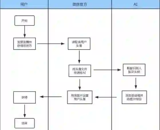 微信官方收到图片后,还是通过读取 openid 找到该用户,将该图片应用到该用户的头像,并提醒到该用户,整个过程不到五分钟。