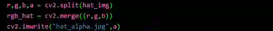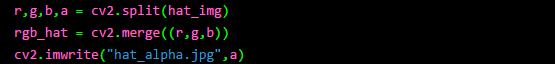 我们通过通道分离可以得到圣诞帽图像的 Alpha 通道,代码如下: