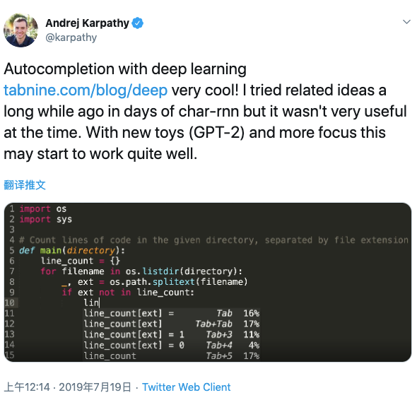 - Andrej Karpathy(@karpathy),2019年7月18日