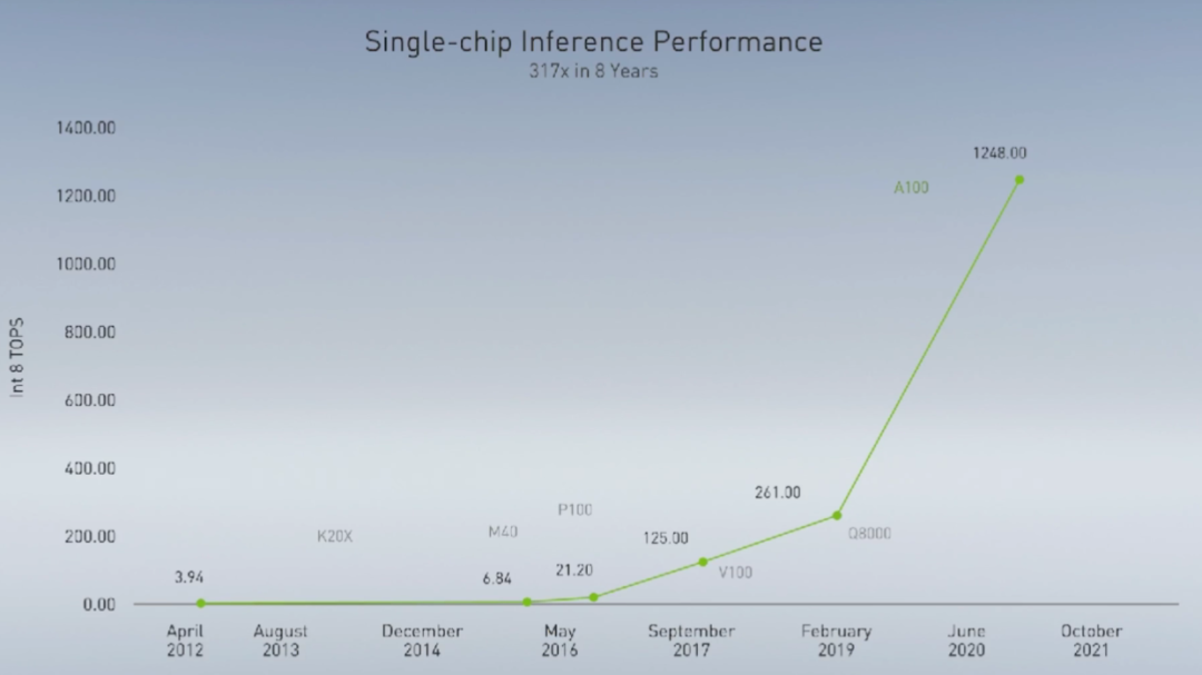 下面这张图表展示了从2012年的Kepler,一直到今年5月份的Ampere A100,