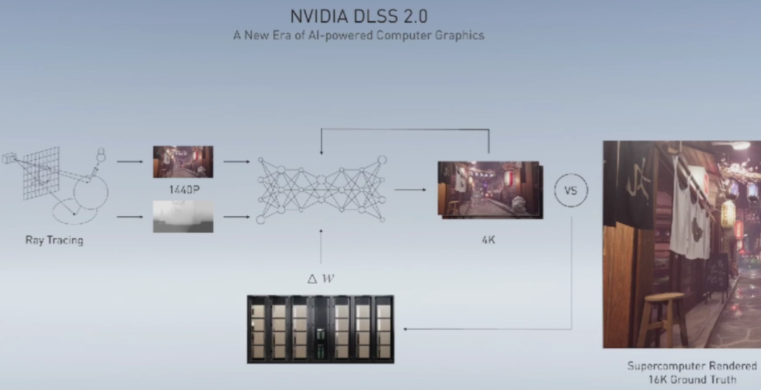 另一项能够让我们以实时速率渲染更多内容的技术是NVIDIA DLSS或者深度学习超级采样(Deep Learning Super Sampling)。现在是DLSS 2.0版本,可以提供比1.0更高的性能。
