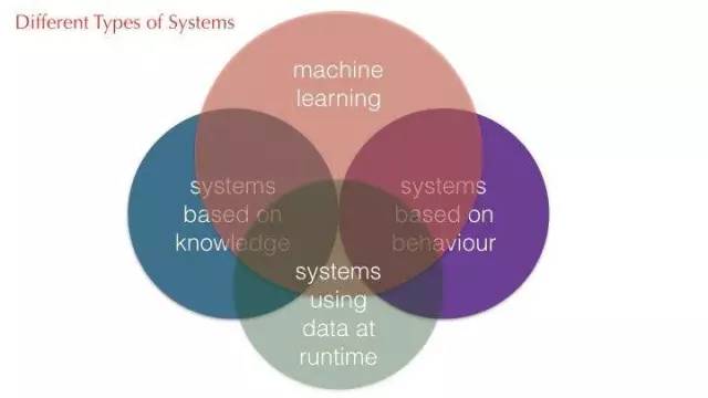 我们看到有两种不同的系统:在人工智能历史上很多系统都是基于知识的系统,有一种系统更多的是针对比较小群体的行为,比如说使用基于规则的专家系统来检查信用的,且已经用了很多年了;还有一种系统,在进行机器学习之前做研究行为,我们见到的更多是经典的反应性机器学习。