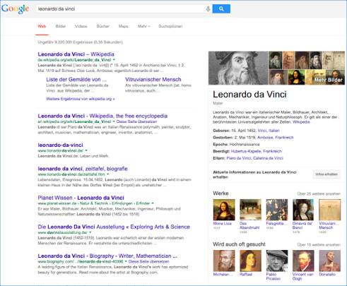 如果说现在随机选择一个美国的搜索引擎进行搜索,我们会在搜索结果页面的右侧看到一些小框,它们并不来自于文件,左边是来自于文件,是典型搜索引擎的搜索结果。在右边我们看到的东西其实都是来自于知识图谱的非结构化知识。