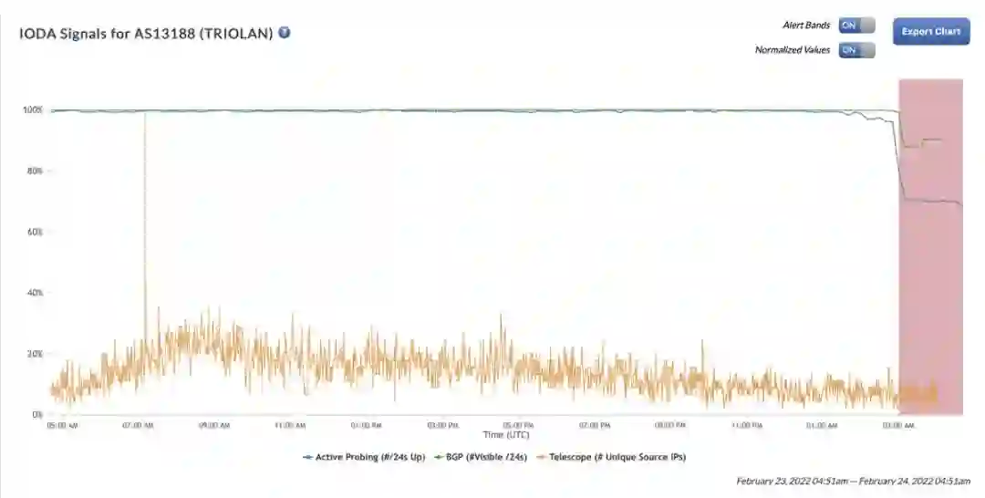 佐治亚理工大学的「互联网中断检测和分析」(IODA) 项目报告称,当地部分断网从2月23日午夜之前开始,一直持续到2月24 日上午。