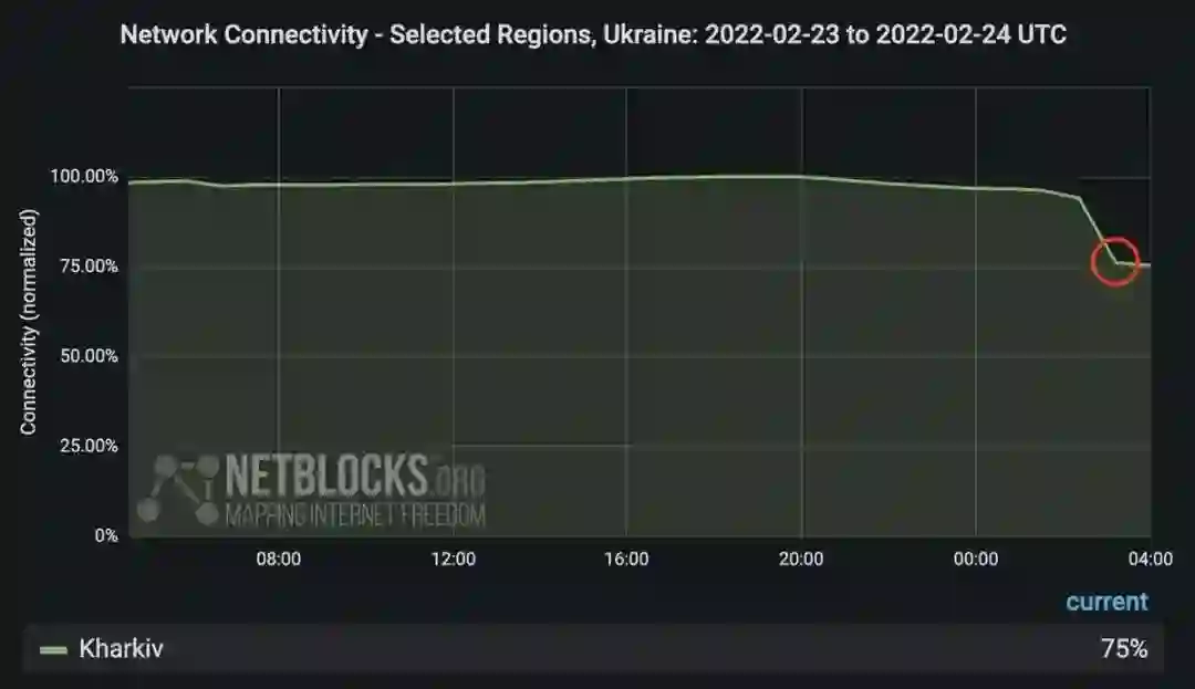 其实,俄罗斯的入侵已经让乌克兰部分地区的互联网连接中断。