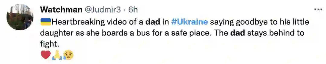 早上看到一则令人心碎的视频,视频中,乌克兰小女孩的父亲要去参军,不得不将自己的女儿和妻子送到安全的地方。