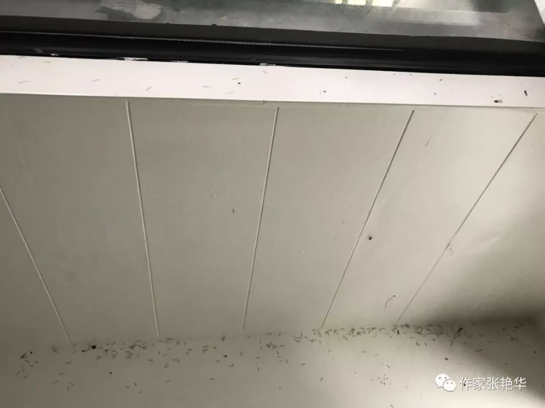 (因为潮湿,白蚁时常好几百只出现,啃食我的木制家具。沿着墙体定制的家具宛如泡在水里,已经开始腐烂了。)