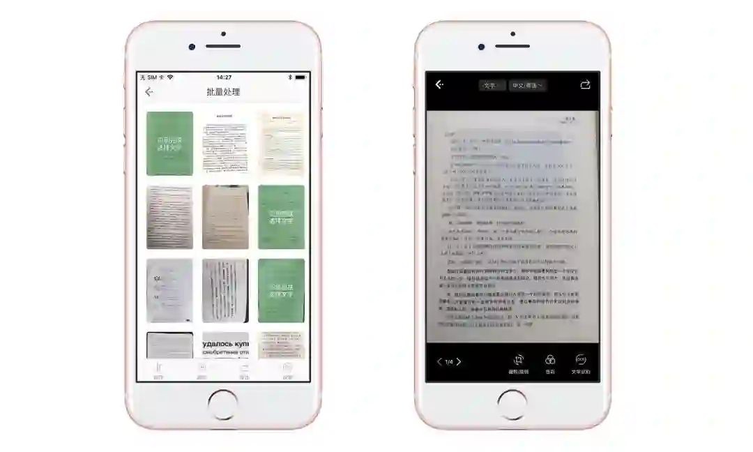 批量处理页面除了普通的图片排序、删除、添加之外,也可以直接批量文字识别和导出 PDF,导出的 PDF 可以自由分享到其他软件。从批量页面进入某张图的处理页面,左下角会显示切换图片按钮,方便逐个处理。