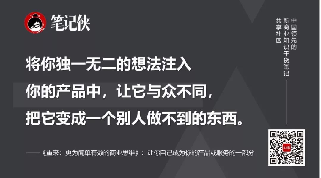让你自己成为你的产品或服务的一部分。将你独一无二的想法注入你的产品中,让它与众不同,把它变成一个别人做不到的东西。