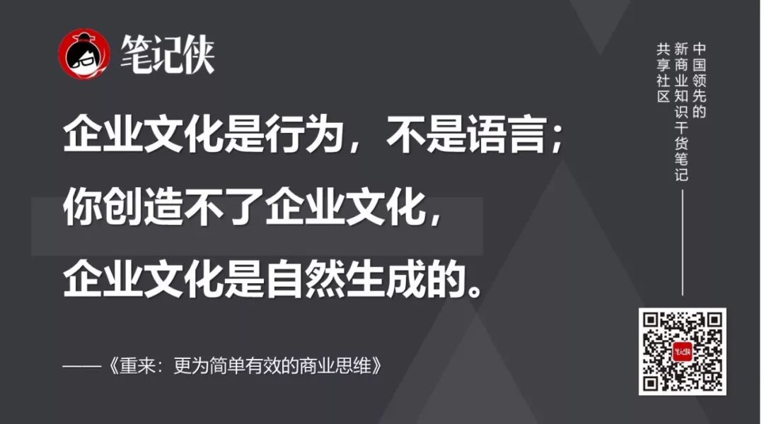 你创造不了企业文化,企业文化是自然生成的。这就是新公司往往没有企业文化的原因。企业文化是一贯行为的副产品。