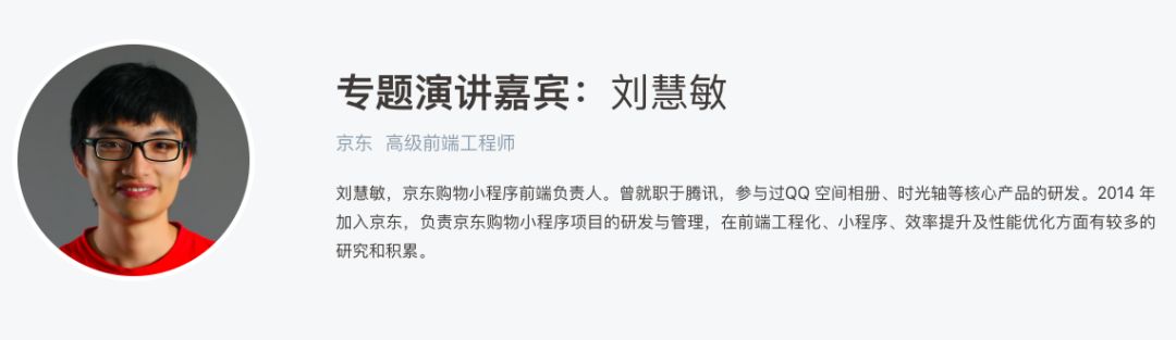 京东购物作为第一批上线的微信小程序之一,两年多以来在工程化上的探索从未间断过。从最初的 Gulp 构建,到现在的自研 CLI 工具、持续集成系统,需要手工进行的操作大大减少,使得团队成员能够更加专注于业务开发。与此同时,我们在性能提升、多端支持、团队协作、自动化测试、监控告警等方面也有不少的尝试和积累,本次演讲将为大家带来完整剖析。