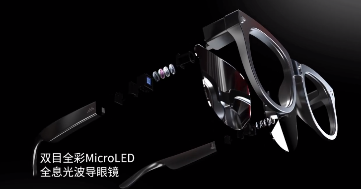 此款 AR 眼镜研发三年,采用了全息光波导与全彩 MicroLED 显示技术,通过雷鸟创新自研光波耦合分析优化算法与独特全彩微显示引擎,兼顾轻薄与高亮全彩显示,成为业内首款双目全彩 MicroLED 全息光波导 AR 眼镜。
