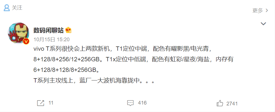据博主 @数码闲聊站 最新爆料,vivo 即将推出两款新机,T1 定位中端,T1x 定位中低端。