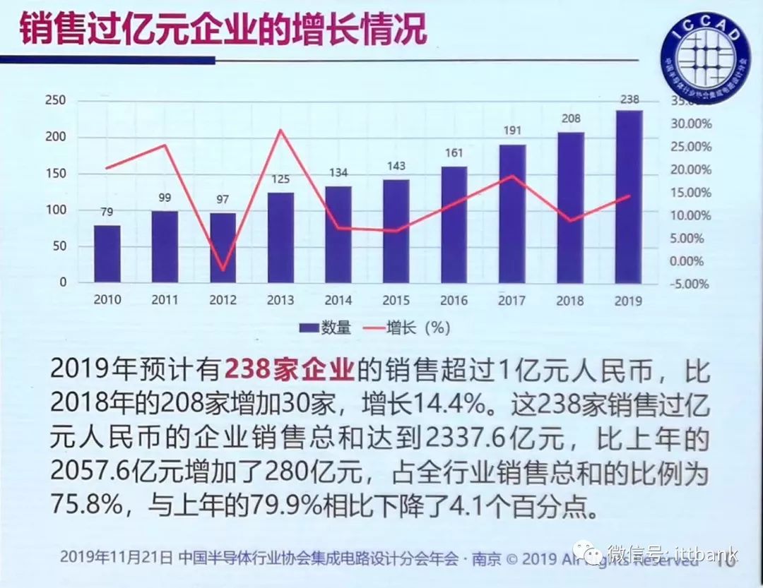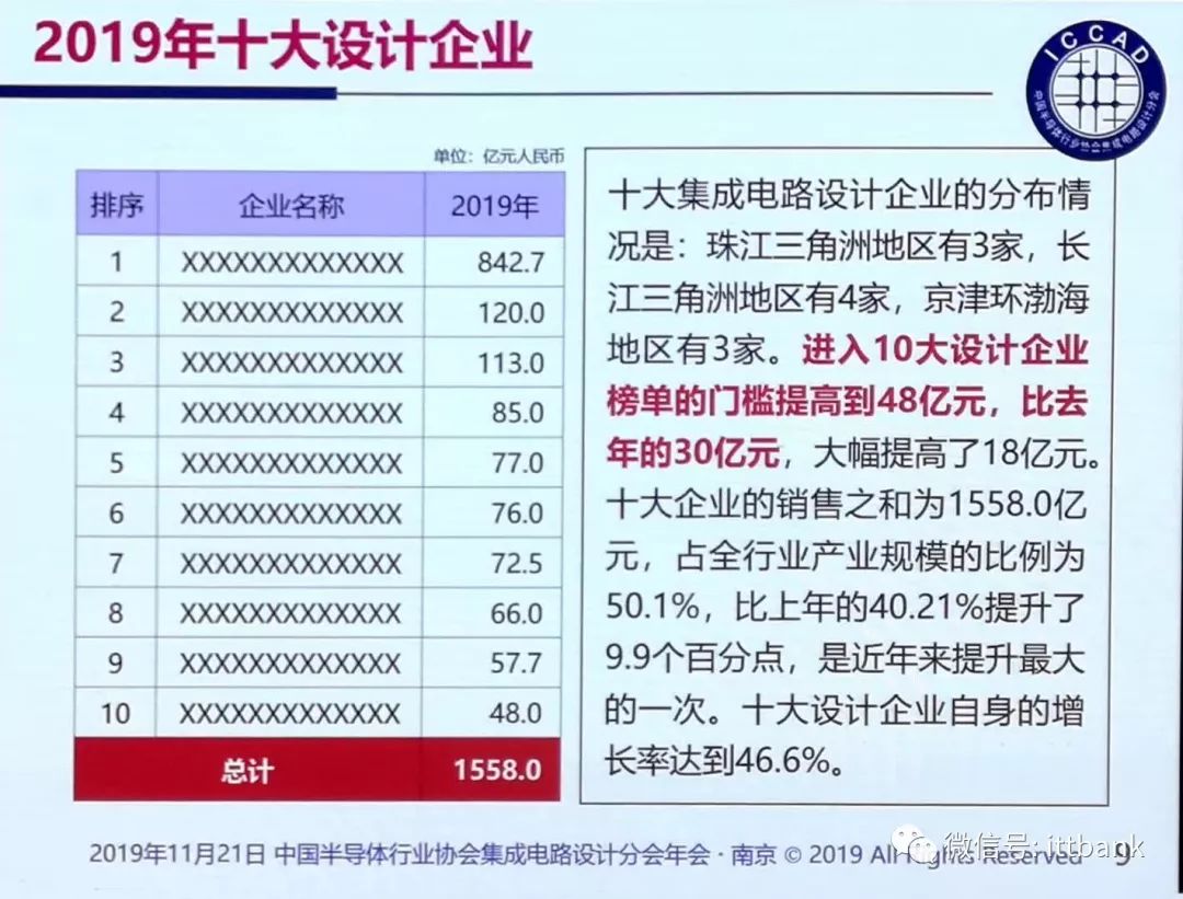 魏教授同时指出,根据他预计,到明年,进入前十集成电路企业的门槛将会提升到五十亿甚至六十亿人民币。