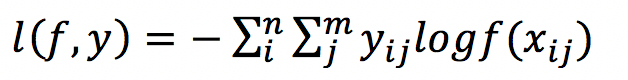 n对应于样本数量,m是类别数量,yij 表示第i个样本属于分类j的标签,它是0或者1。对于单分类任务,只有一个分类的标签非零。f(xij) 表示的是样本i预测为j分类的概率。loss的大小完全取决于分类为正确标签那一类的概率,当所有的样本都分类正确时,loss=0,否则大于0。