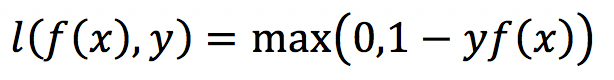 如果分类正确,loss=0,如果错误则为1-f(x),所以它是一个分段不光滑的曲线。Hinge loss被用来解SVM问题中的间距最大化问题。