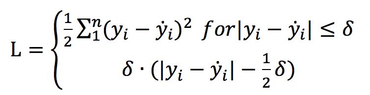 Huber对于离群点非常的有效,它同时结合了L1与L2的优点,不过多出来了一个delta参数需要进行训练。