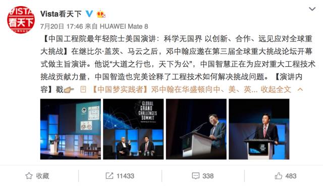 这就是7月19日,在美国华盛顿,中国工程院院士、中星微集团董事局主席邓中翰。
