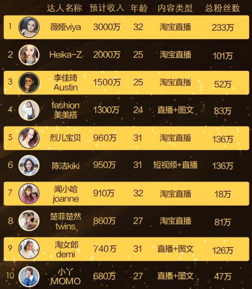 日前在淘宝上聚集了160万内容创业者,为平台卖家创造的价值达千亿元,很多主播也都从这里赚到了第一桶金,其收入来源主要是来自所推广店铺的抽佣。
