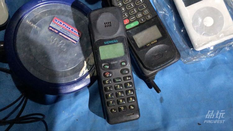 西门子手机左边的蓝色饼状物体,是索尼公司曾的 Walkman 个人随身音乐播放器。但随着数字化音乐的到来,这个曾风靡一时的设备后来被 MP3 所取代。如今早已被年轻人遗忘,只能成为收藏的古董,偶尔拿出来把玩。