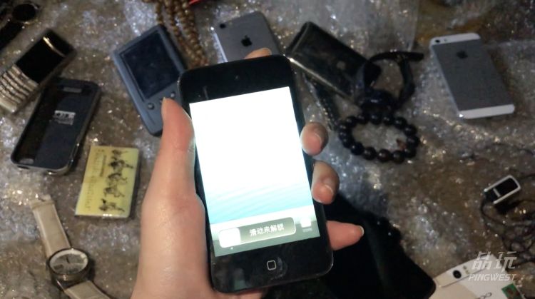 我幸运地找到了一台还能开机的 iPod Touch 4。一代经典多功能媒体播放器,如今在古董市场上静静地躺着,无人问津。身边围绕的是苹果皮、iPhone 5、iPhone 6,说不清楚型号的电子手表、甚至还有一台可旋转摄像头的 OPPO N1。
