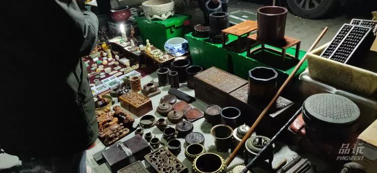 买家们都自行带着手电筒往地摊上照。能不能淘到好货,全靠自己的眼力和运气了。并且手电筒只能照货不能照人,否则就坏了市场规矩。