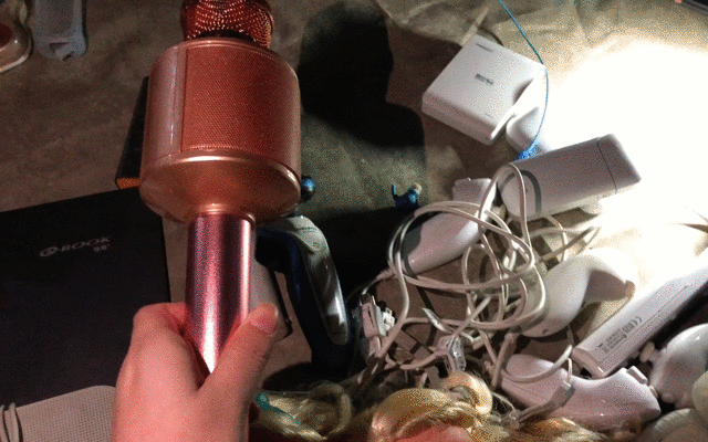 如果你想跟着唱,那也没问题,鬼市中就连话筒外形的声卡也有。在这里,买家几乎能淘一整个卡拉OK套装回家——只要你开车来拉走。
