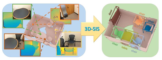 3D-SIS:RGB-D扫描的3D语义实例分割